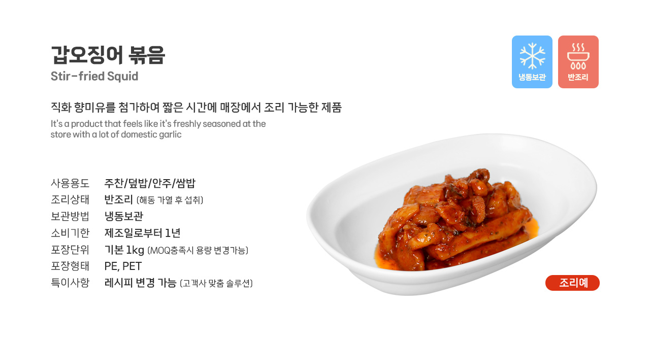 국내산 마늘을 듬뿍넣어 매장에서 갓 양념한 듯한 느낌의 제품