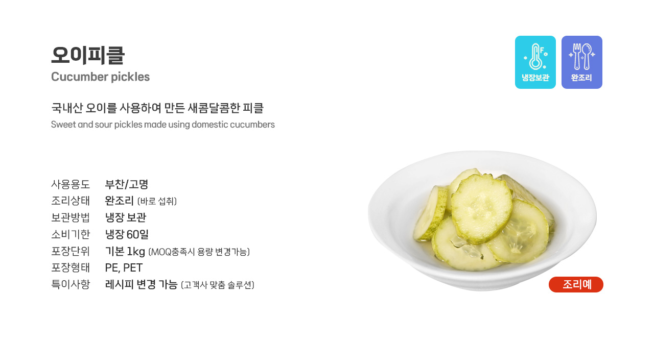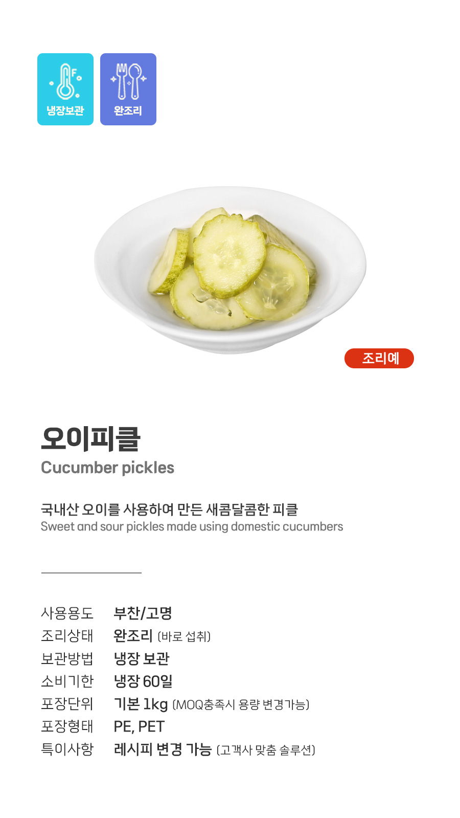 국내산 오이를 사용하여 만든 새콤달콤한 피클