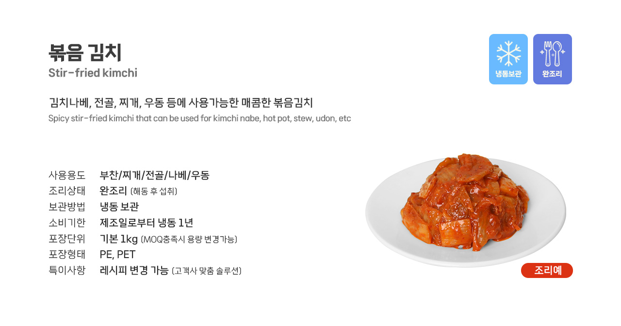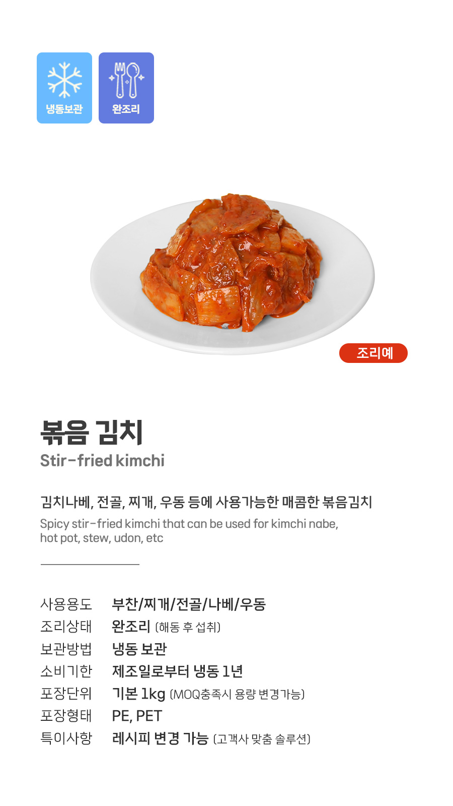 김치나베, 전골, 찌개, 우동 등에 사용가능한 매콤한 볶음김치