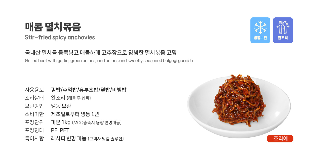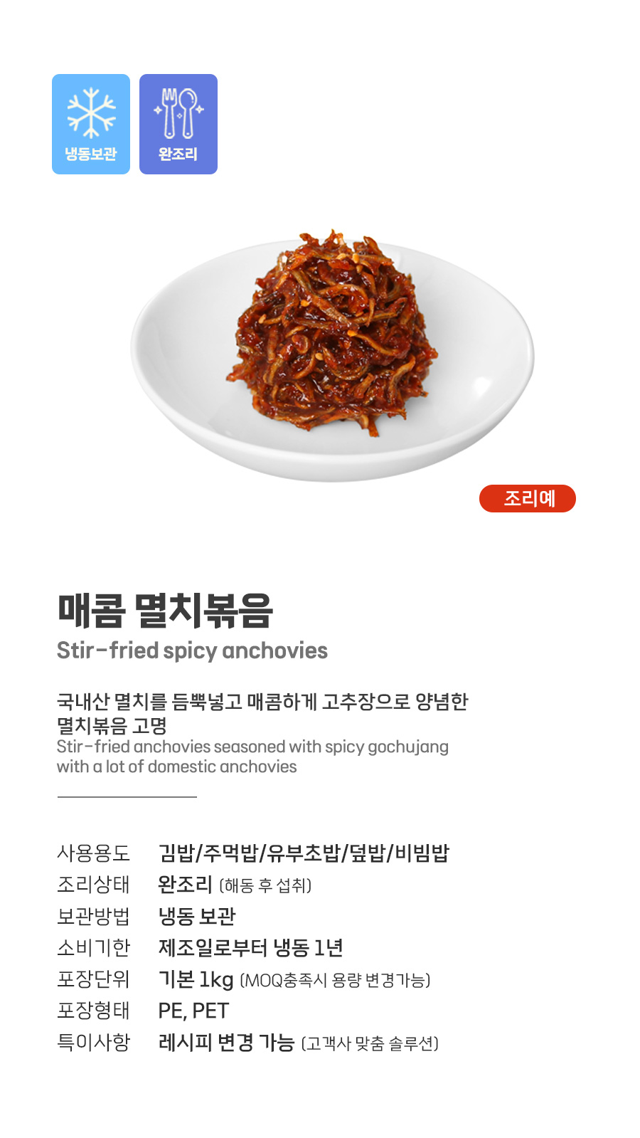 국내산 멸치를 듬뿍넣고 매콤하게 고추장으로 양념한 멸치볶음 고명