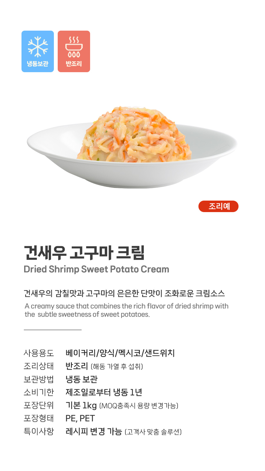 건새우의 감칠맛과 고구마의 은은한 단맛이 조화로운 크림소스
